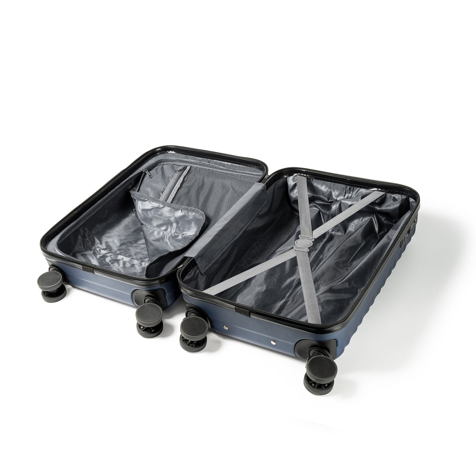 Trolley rígido en resistente ABS. Interior con dos compartimentos principales y bolsillo de rejilla auxiliar. Incluye cierre de seguridad TSA integrado. Trolley de características aptas para cabina. Ruedas giratorias que facilitan la movilidad de rodado en cualquier dirección.