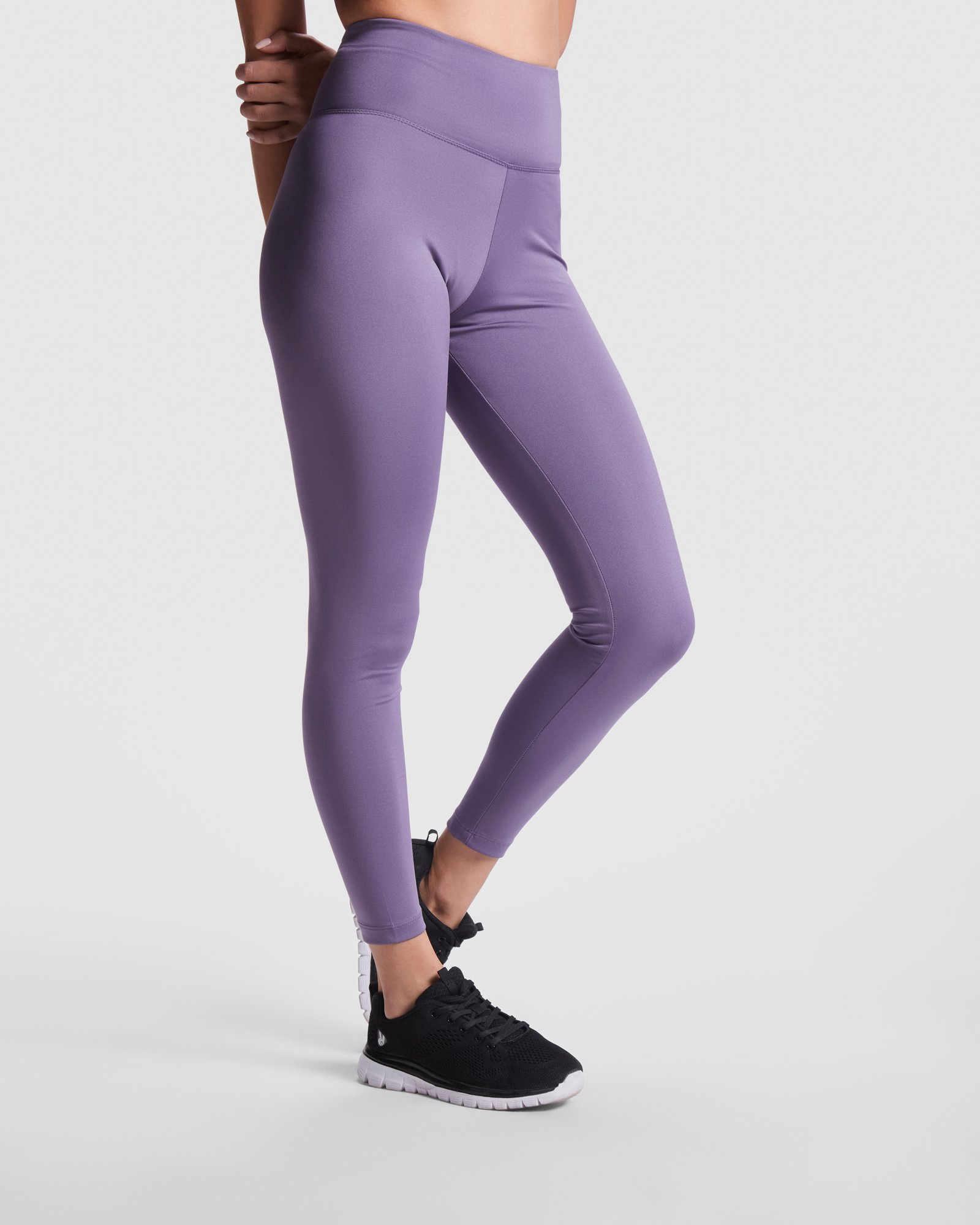 Legging deportivo tobillero de cintura ancha. Bolsillo trasero en cinturilla con banda reflectante. Pieza en cruce interno del tiro. Costura overlock a tono en cintura. Logo Roly reflectante en lateral de cintura.