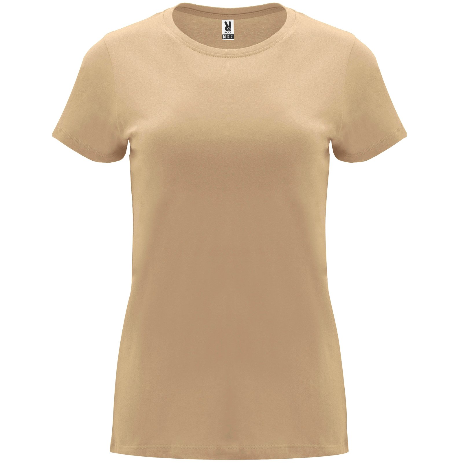 Camiseta de manga corta entallada en cintura. Cuello redondo en canalé 1×1. Cubrecosturas en cuello del mismo tejido.