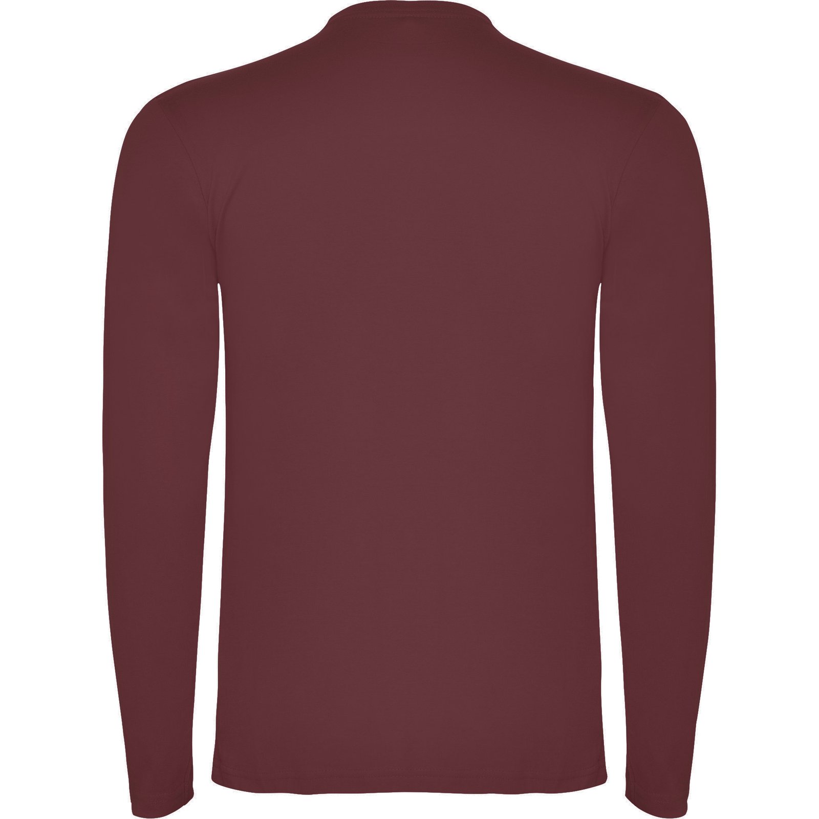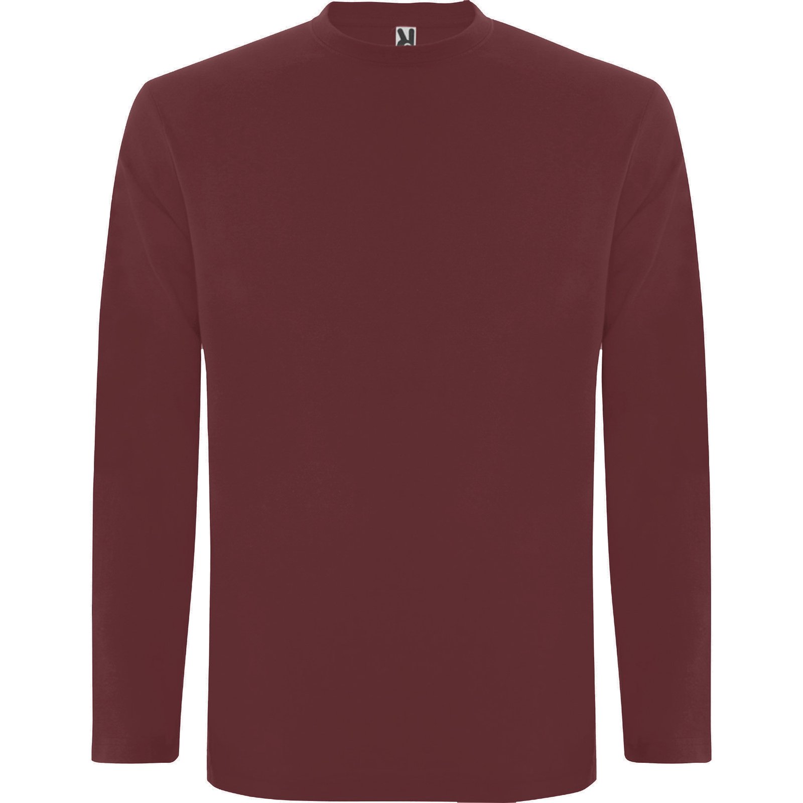 Camiseta de manga larga tubular en tallas de adulto y costuras laterales en tallas de niño. Cuello redondo en canalé 1×1 (4 capas). Cubrecosturas en cuello del mismo tejido.