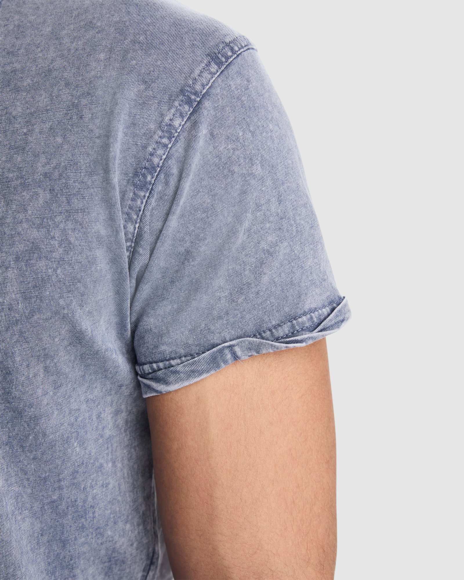 Camiseta de manga corta con costuras laterales efecto lavado. Algodón peinado. Cuello redondo en canalé 1×1. Cubrecosturas en cuello del mismo tejido. Costuras dobles en laterales y sisas. Costuras decorativas en mangas y bajo y detalle de costuras de refuerzo en dobladillos.