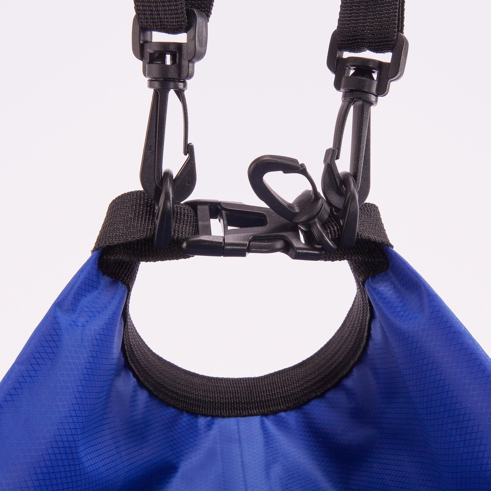 Bolsa impermeable de resistente ripstop. Sistema de cierre estanco con clic. Mosquetón y cinta bandolera ajustable para transporte. Capacidad total: 15L. Capacidad útil: 10L.