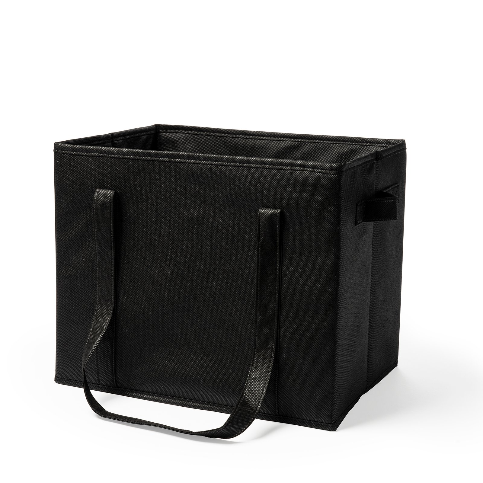Organizador de maletero para coche en resistente non-woven. Asas de transporte reforzadas, asas laterales y bolsillo frontal. Base rígida para un mejor ajuste.