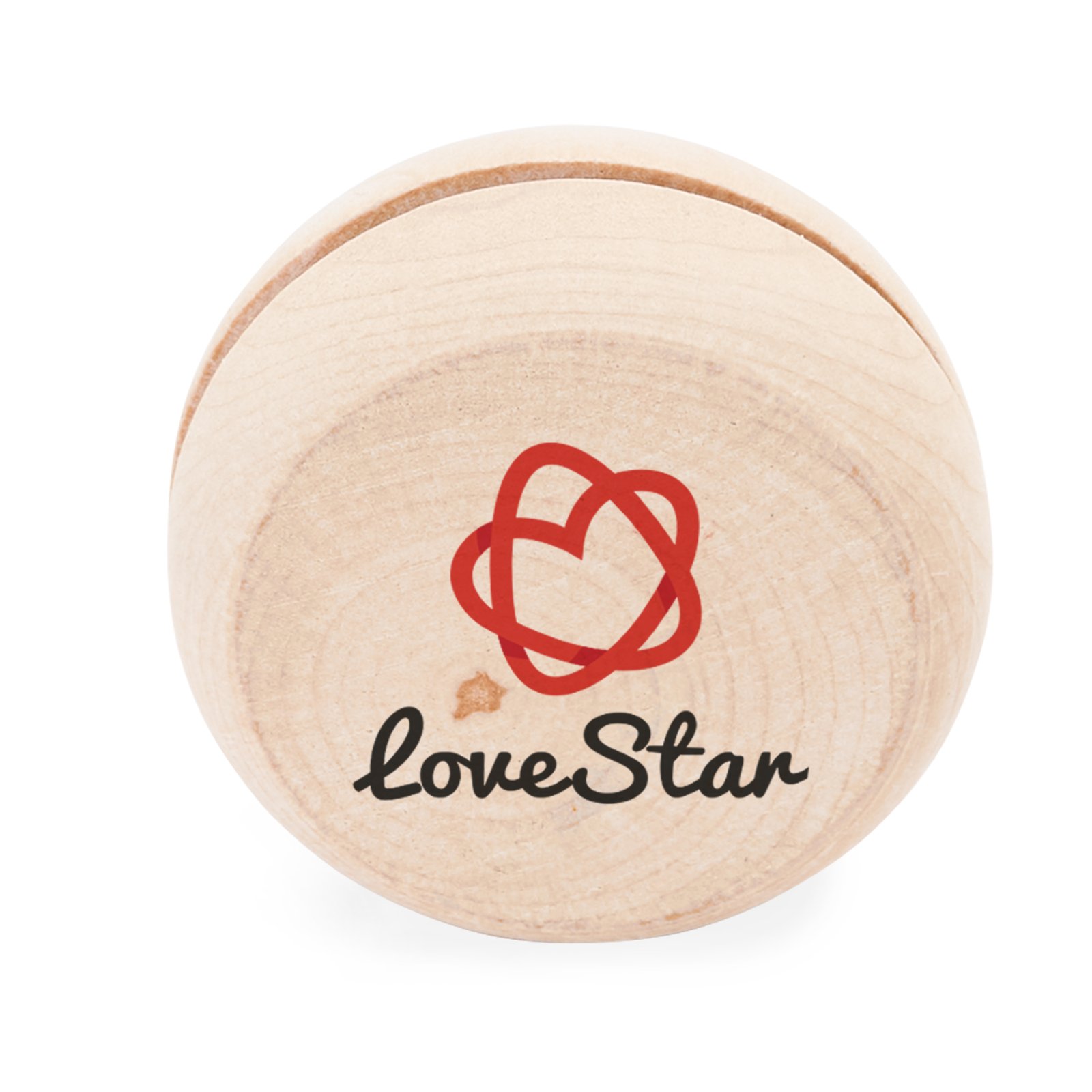 Yoyó de madera natural con cordón de 100 cm en color blanco.