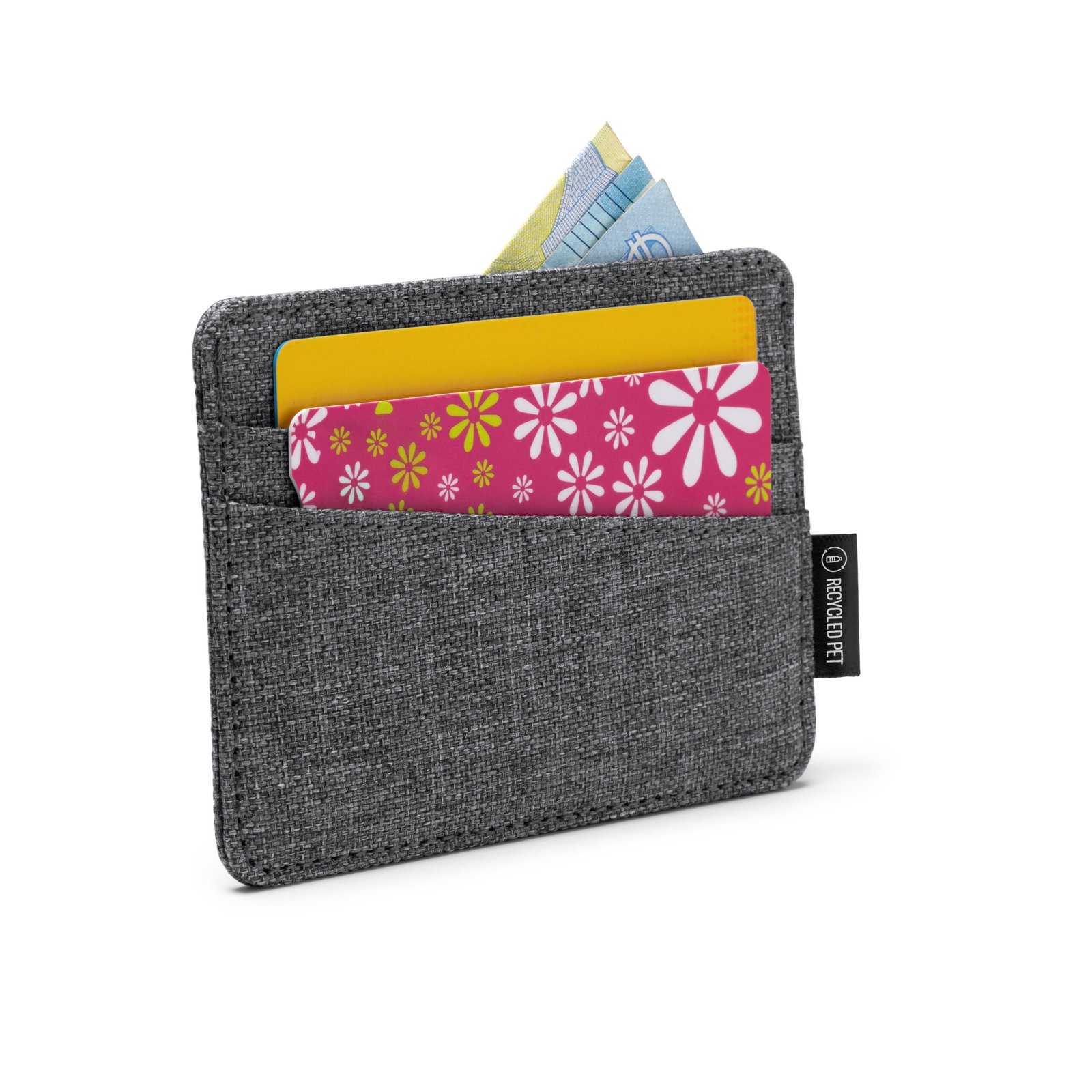 Tarjetero de poliéster reciclado RPET con diseño vigoré, una opción sostenible para mantener tus tarjetas organizadas. Cuenta con tres compartimentos para tarjetas, que te permiten llevar contigo tus tarjetas de crédito, débito, identificación y cualquier otra que necesites tener a mano.