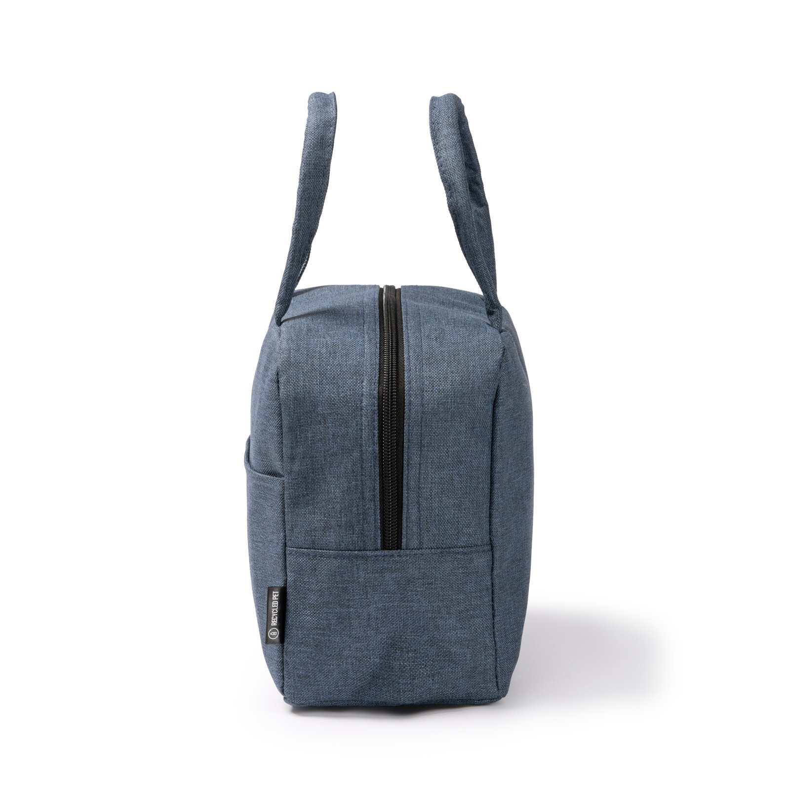 Nevera realizada en 600D RPET con un compartimento principal con interior isotérmico para el almacenaje de bebidas y alimentos a la temperatura óptima. Cuenta, además, con un bolsillo frontal para el almacenaje de utensilios y pequeños snaks, además de asas redondas acolchadas para mayor versatilidad en su transporte.