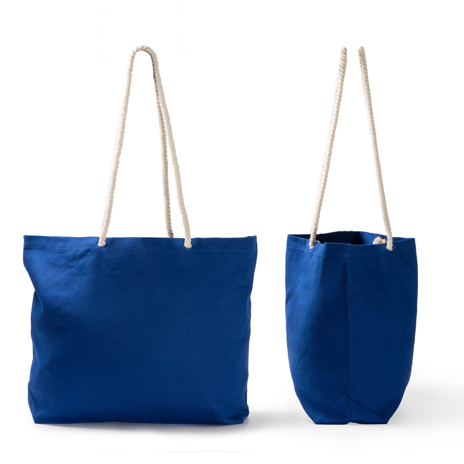 Bolsa de playa realizada 100% en algodón de 260g/m². Cuenta con resistentes asas de estilo náutico fabricadas también en algodón con una longitud de 90 cm, que la convierten en una opción práctica y cómoda.
